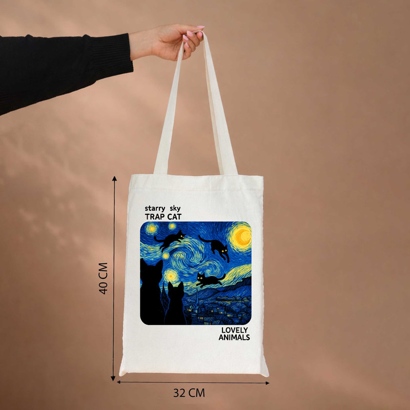 ساک خرید طرح آسمون پر ستاره و گربه کد 003
